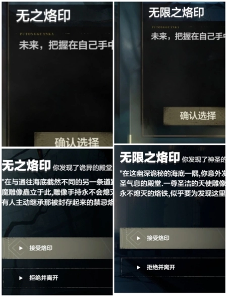 在第四章刷出名为“无之烙印”的物品并选择接受。
