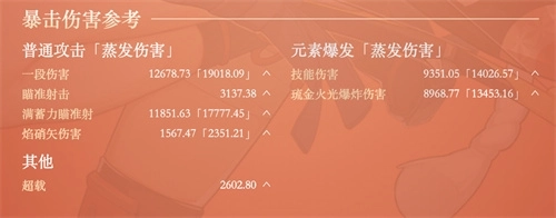 注意:数据是依据角色90级、天赋等级9,圣遗物配置为追忆四件套,且主词条选择攻/火/暴的情况进行计算的。