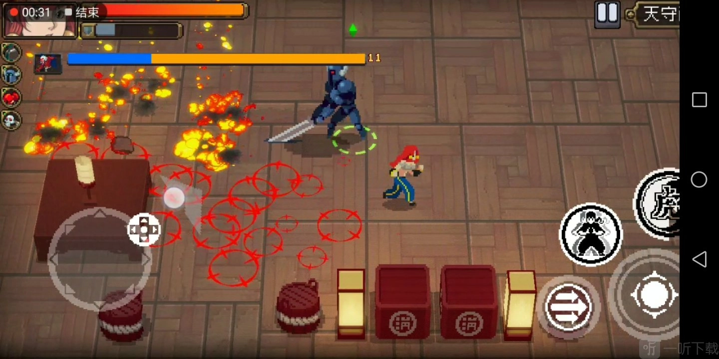 BOSS会升空并进入短暂无敌状态,随后会有火球朝着你所在位置袭来,此时我们可以通过移动来躲避。