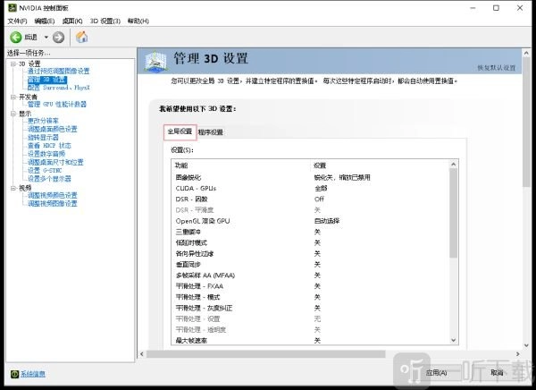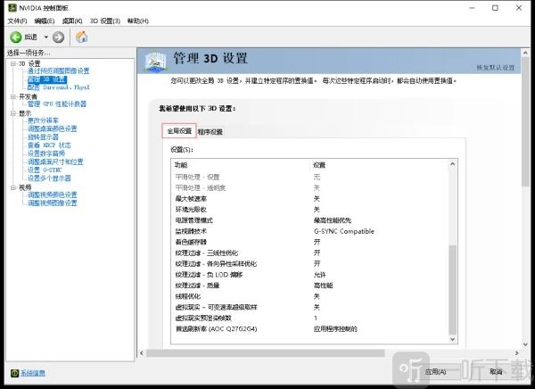 (2)“管理3D设置”中的全局设置按照以下图片进行设置