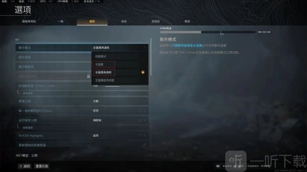 对于第一项显示模式,游戏主播建议选择“全屏幕无边框”,如此在频繁切换画面时不会出现黑屏情况。而其他玩家可选择“全屏幕”,该模式帧率会比“全屏幕无边框”高出5 - 10帧。其余设置项请参照图片。