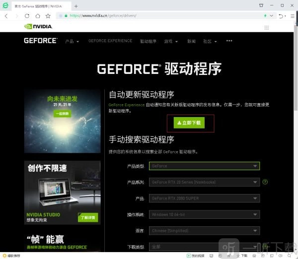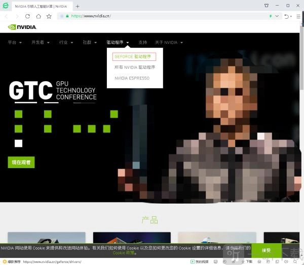 (1)打开NVIDIA官方网站,下载GEFORE驱动程序;