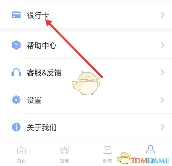 2、进入“我的”页面后,找到“银行卡”选项,点击该“银行卡”。