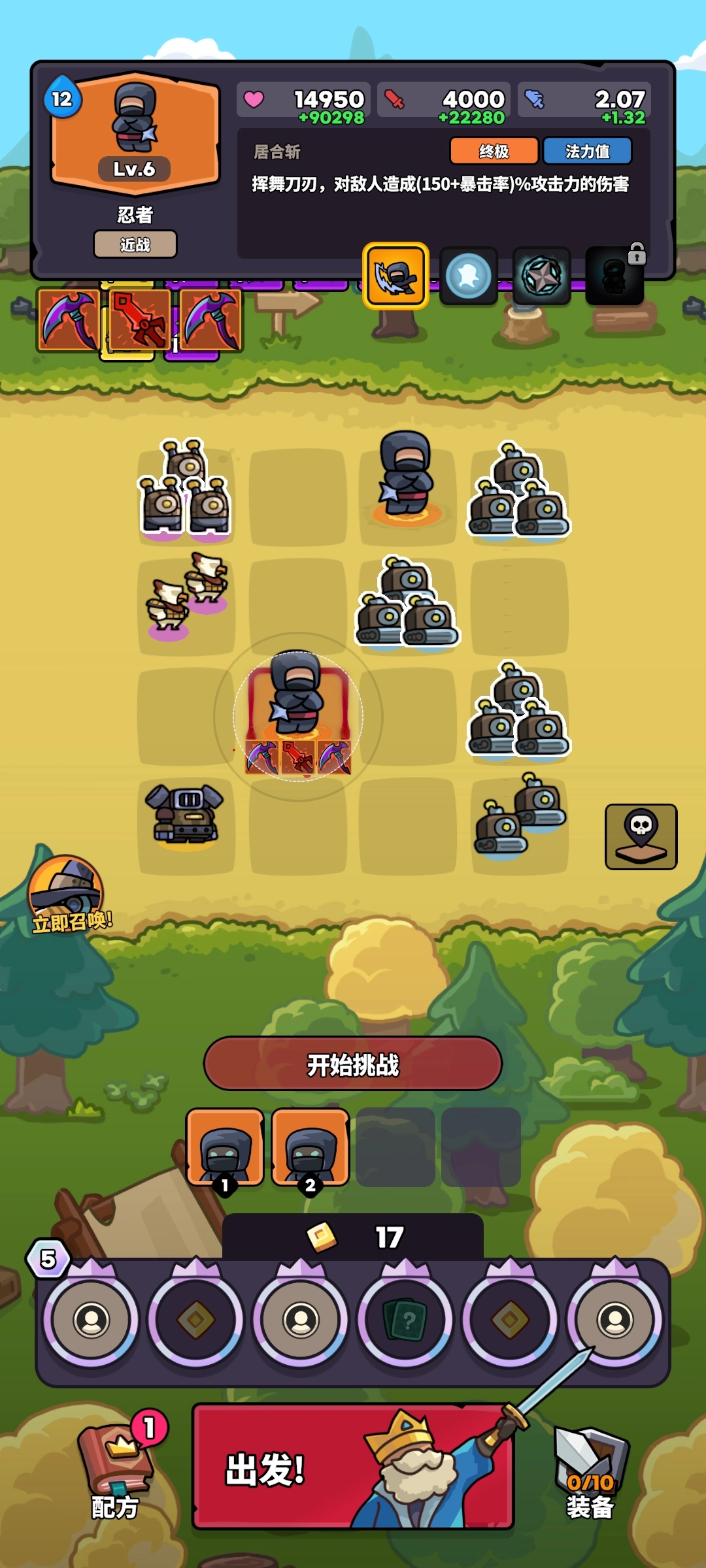 ②培养忍者的原因:神话石数量有限,合成难度相对较低,可视为低配版巨龙。与局内词条(装备/技能)的适配度高,至少能够战胜普通关卡第30关的狼人boss,从而获取保底资源。