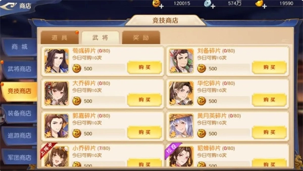 因此,阵容内武将的所有碎片都要买。在碎片产出途径里,军团商店的产出量最大,所以军团贡献务必按最高标准完成。