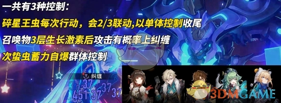 3、碎星王虫的速度并不快,然而它每次行动,都会针对我方单体角色,造成一次具有高概率的纠缠控制效果。