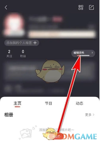 1. 进入个人主页后,点击【编辑资料】。