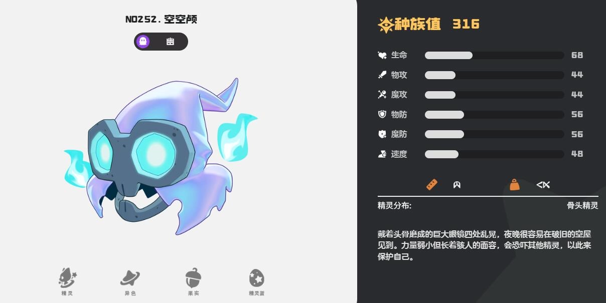 获取它的方式很简单,在图中所示位置直接抓取就行。玩家在野外探索过程中,有机会碰到它,将其击败后,有一定概率掉落宠物蛋。为提高捕捉成功率,建议带上高级咕噜球。需要注意的是,它仅在夜晚出现,千万别错过时机。 空空颅的技能主要侧重于干扰,像“恐惧之影”能使对手有概率跳过回合,“暗影侵蚀”还会附带持续伤害。它的速度比较快,适合先手掌控局面,不过输出能力较为普通,得搭配高爆发的队友。从特定性来讲,它属于返场增伤类型,可以和频繁换场的阵容打出combo。推荐的技能组合为暗影爪 + 恐惧之影 + 灵魂震荡 + 暗夜守护,这样能兼顾输出与生存能力。