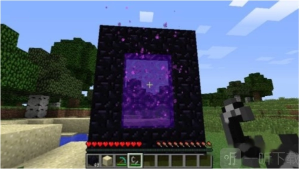 最后一步便是激活传送门,先备好打火石,在门框的空白处点火,届时便会出现如下面图片所示的紫色物质,如此传送门就制作完成了。