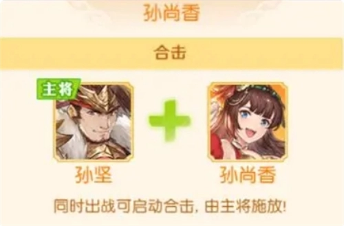 优点:组合生存能力比较好,合击回血,配合识途巧变战法,孙坚的肉盾特性可以发挥到极致,也是四个国家中生存能力最强的一对组合。孙尚香类似甘宁可以持续单输出追击,无限收割。