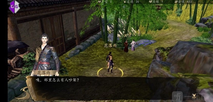 到这里触发任务,和洪才对话。接着在房门前找脚印继续和洪才对话,然后找丁婶。
