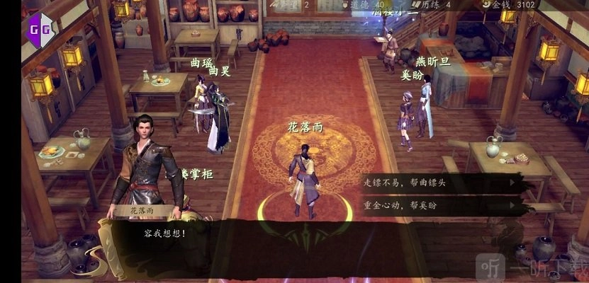 接着前往酒馆2楼,点击与钟离雪对话,选择“以武会友”选项,打赢之后再次与之对话,选择“九阴”,从而触发任务。随后和她身旁的师父对话,开启“寻找藏宝图2”任务。