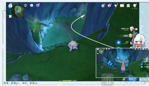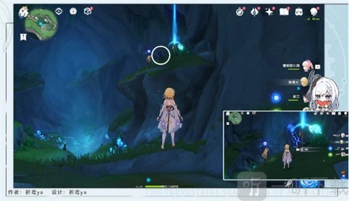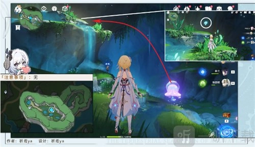 5、接着靠近旁边的水母,往北边的崖壁飞去,在崖壁处能够引导第二个仙灵。