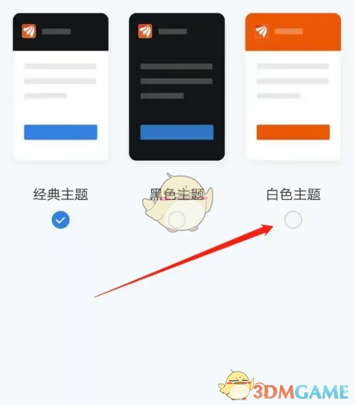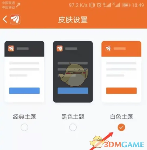 3、在皮肤设置页面,按照指引点击“白色主题”标识。