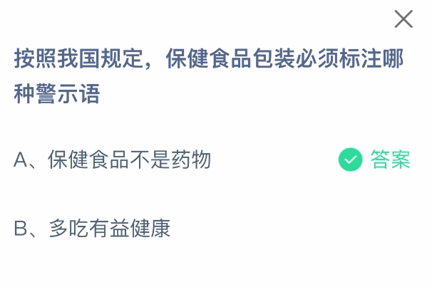 按照我国规定,保健食品包装必须标注的警示语就是以上这些。支付宝蚂蚁庄园2025年6月13日答案最新,更多精彩内容,敬请点击关注520资讯网的更新!