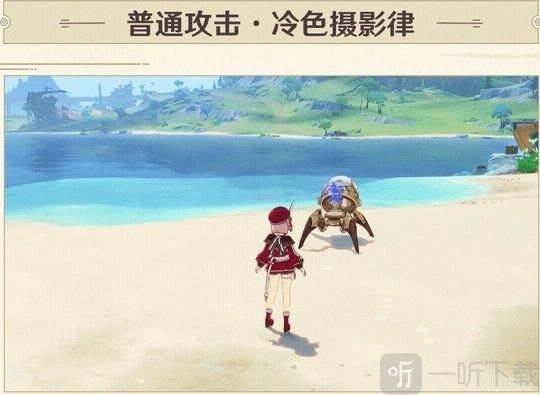 以特制留影机「温亨廷先生」瞄准目标,进行至多三段的攻击,造成冰元素伤害。