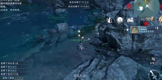 6、第六个宝箱的位置处于【720.895】,在石块旁边就能找到。