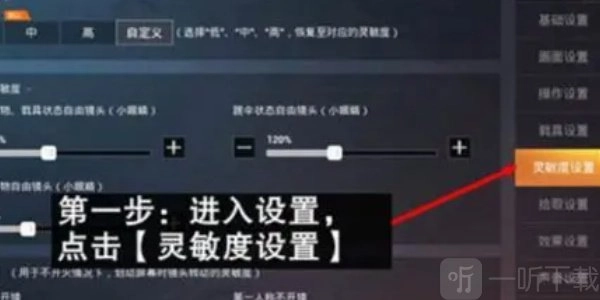 1、通过在游戏中点击【设置】,找到右侧的【灵敏度设置】。