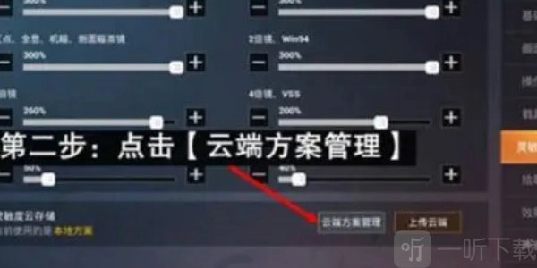 2、灵敏度设置设置页面中,在选择【云端方案管理】。