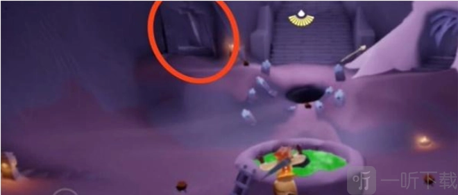 2、接下来,当我们抵达目的地“八字”后,便能看到标记好的洞口,随后朝这个洞口走去。