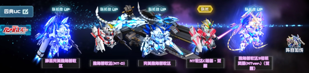 NT敢达C装备·觉醒、独角兽敢达(NT-D)、完美独角兽敢达、独角兽敢达3号机 凤凰(NTver.)(觉醒)、神圣完美独角兽敢达