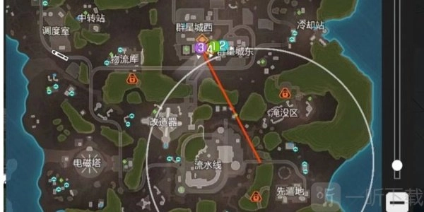 1、军备库的位置分别处于中转站右上方、物流库下方、发电组上方以及淹没区上方,具体位置如下图所示。