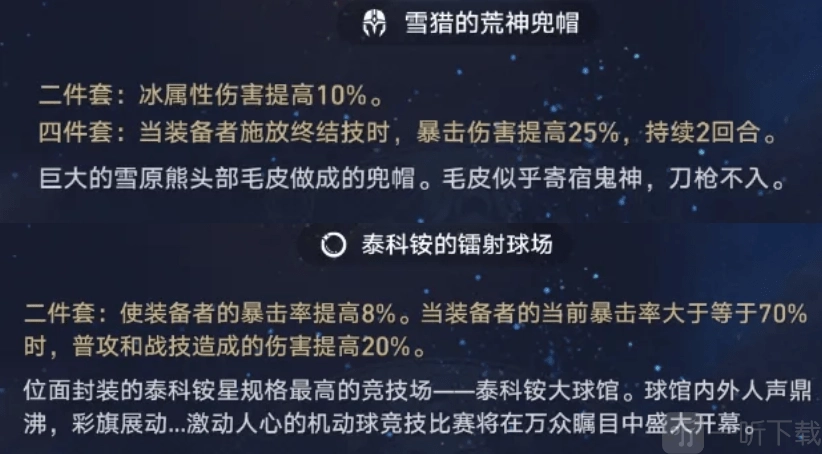 套装方面,外圈优先推荐冰4件套。尽管其终结技伤害不算突出,不过2回合的暴击伤害加成时长,整体表现也还不错,虽稍有亏空但程度不大。内圈的话,繁星2件套是最优选择,能够提高战技伤害。要是后期有更合适的,再进行更换即可。比较可惜的是,普攻无法享受到繁星2件套的加成效果。