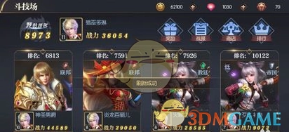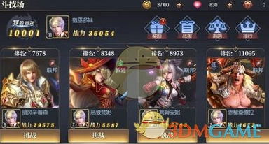 2、当大家进入斗技场后,会看到有四位玩家可供挑战。建议挑选排名与自己相近的玩家进行挑战,切勿选择实力差距悬殊的玩家,不然会严重影响游戏体验。