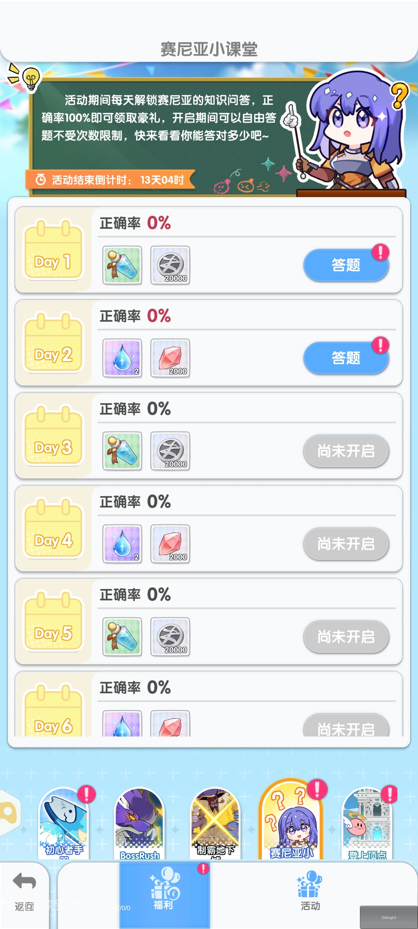活动期间每天参与塞尼亚的知识问答,全部回答正确即可领取奖励,开启期间自由回答不受限制,开来看看你能答对多少吧~