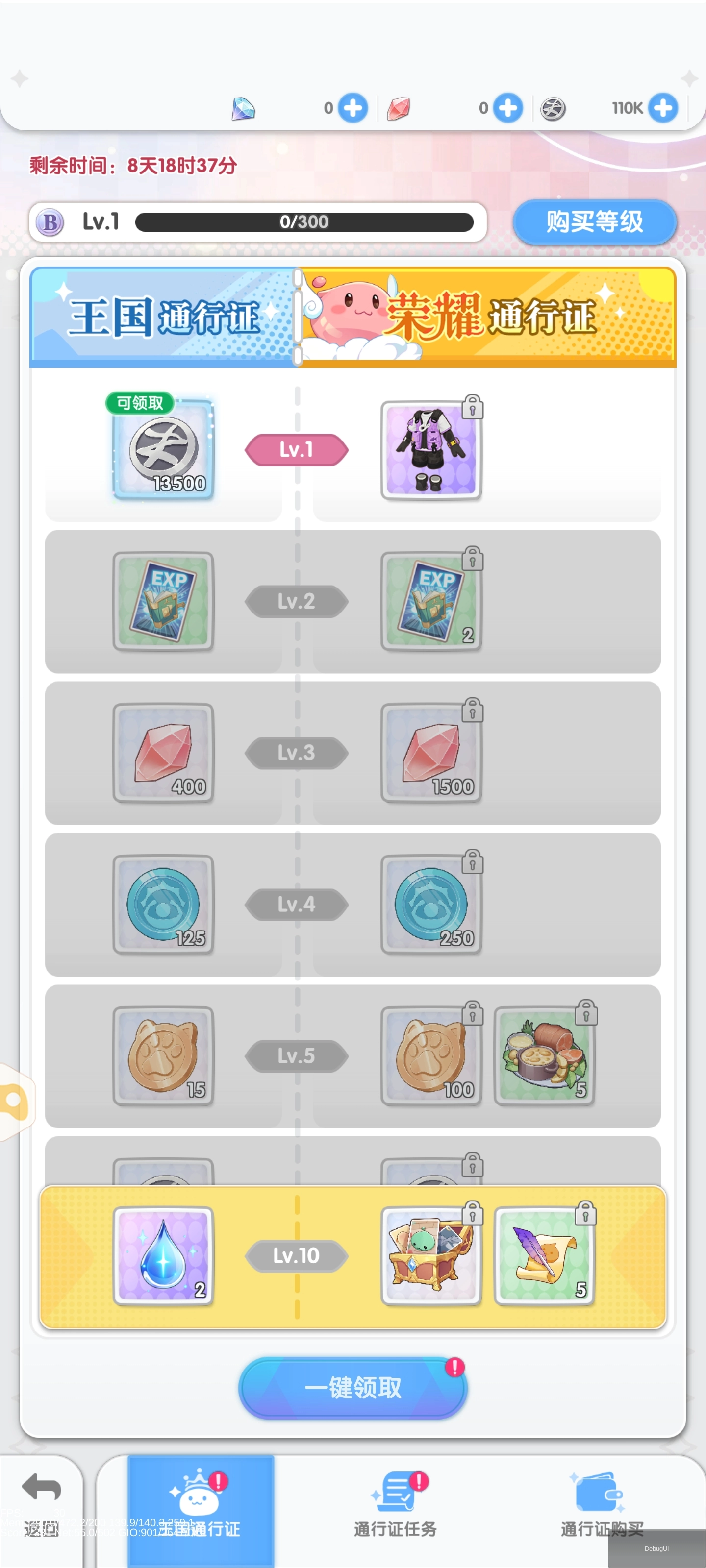 完成对应任务提升通行证等级,就能获取:大量水晶、活力药水、卡片材料以及Zeny币。