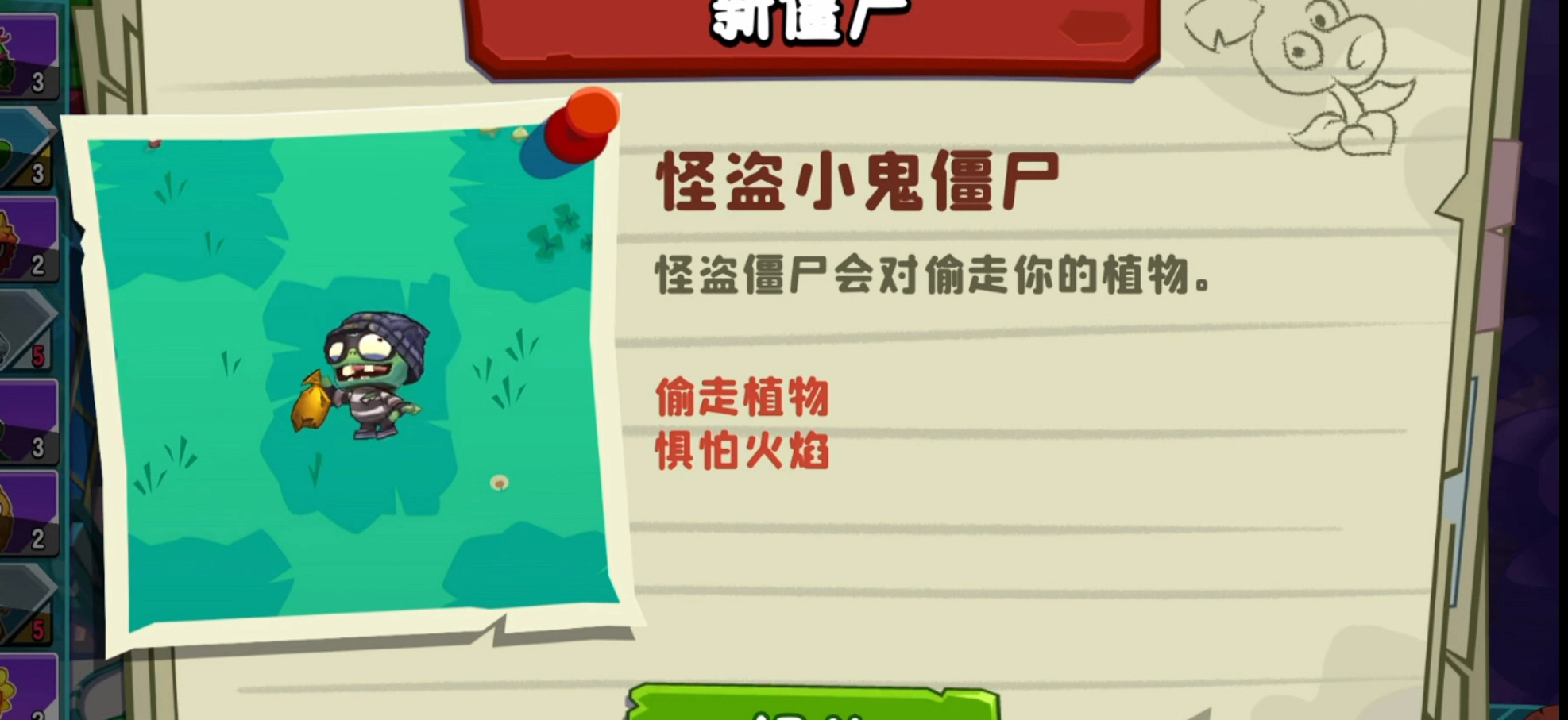 第一关我们会解锁冰箱僵尸及火系植物岩浆玉露,这一关挺简单的。冰箱僵尸惧怕火焰,岩浆玉露可以和其他植物合种,帮助其他植物进化成火系植物,我们可以利用岩浆玉露将向日葵进化成为熔岩向日葵,而熔岩向日葵可以帮助火系植物进化,实力也会提升很多。不过冰箱僵尸挺耐打的,最直接的方法就是用岩浆玉露炸,轻松拿捏第一关。第二关会解锁怪盗小鬼僵尸,它会偷走非火系植物,这关没什么需要注意的,怪盗小鬼僵尸没有那么厉害,拦住它就成。