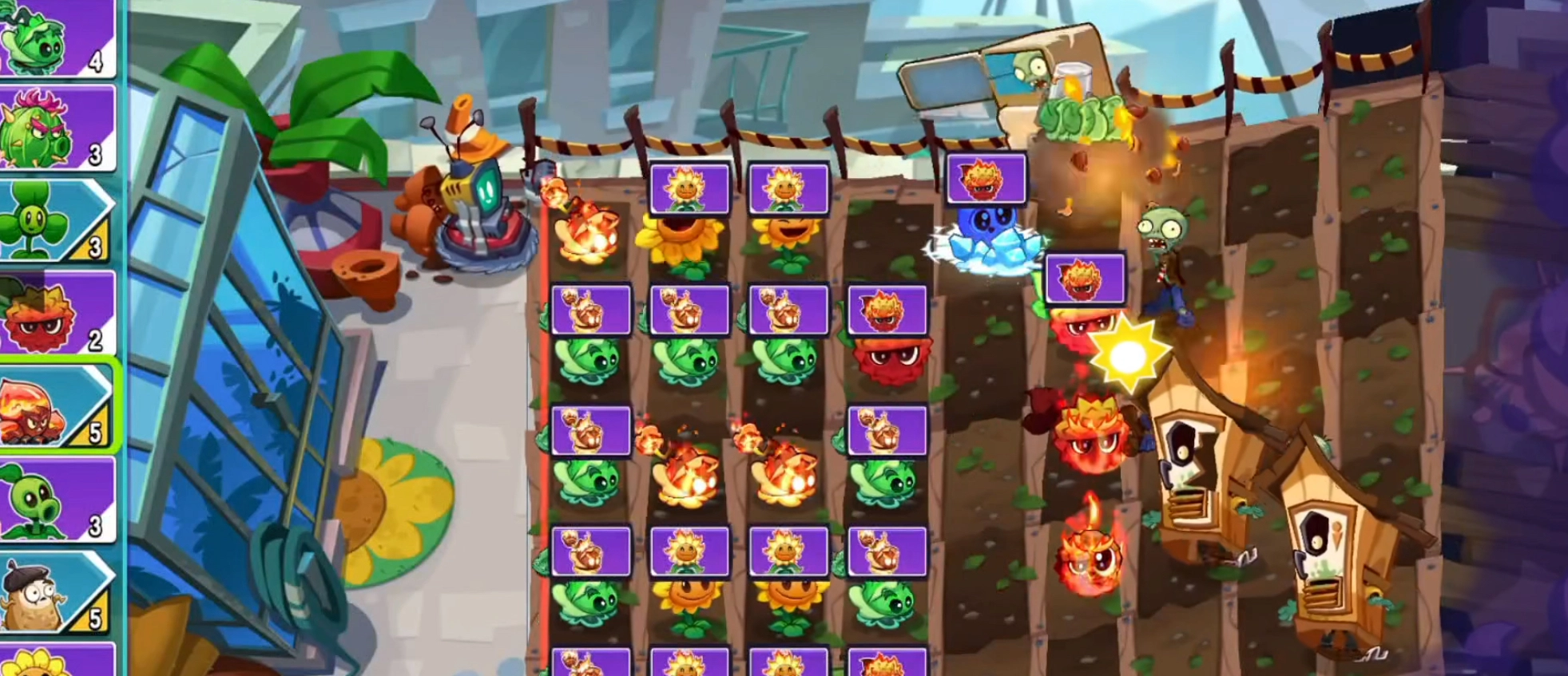 第八关会有香肠摊贩僵尸,每隔一段时间就会投出小僵尸,我们可以利用萝卜伞作为保护,然后荔枝和卷心菜是必不可少的,这个阵型第九关也适用,只要阵型成型那么通关就毫无问题。最后一关我们优先将向日葵和向日葵变味火系植物,然后种上三排荔枝,三排卷心菜,固若金汤,所向披靡,轻松拿捏第十关。