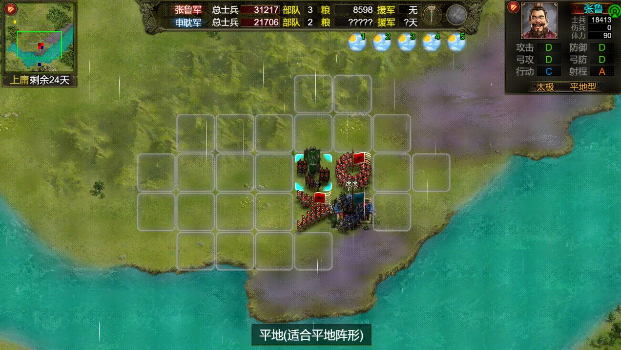 当张鲁或张琪瑛担任主帅,且当前阵型处于太极阵状态时,处于五斗米光环范围内的友军对敌人发动攻击,每次攻击都能为五斗米众主帅回复1点体力,每个回合累计回复上限为10点。同时,取消增加治疗距离的城关限制条件。