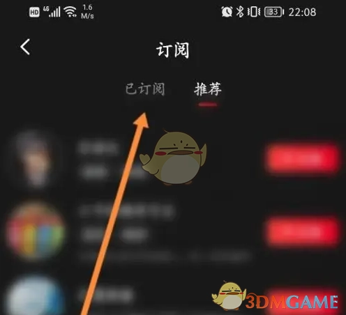 4、于订阅页面,点击已订阅选项。