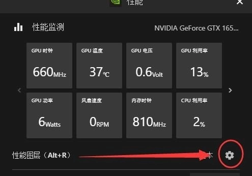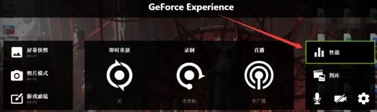 在此以N卡为例,按下ALT+Z键,打开GEFORCE EXPERIENCE界面,随后点击右侧的“性能”选项。