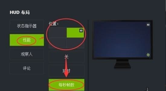 在HUD布局里选择显示的位置,以及勾选上“每秒帧数”。