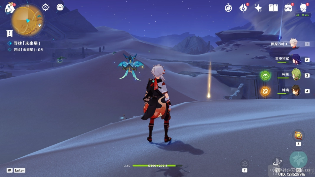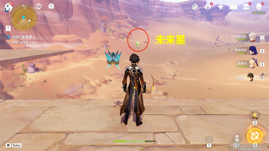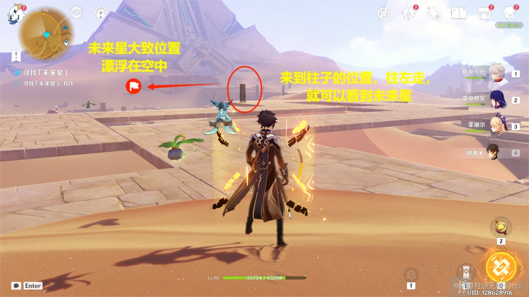 3. 当楼梯被激活成大致这样的状态时,就没问题了。此时,我们要跑到钟离柱子所在位置,接着将视角朝我们的左边方向转动,这样就能看到我们的未来星。