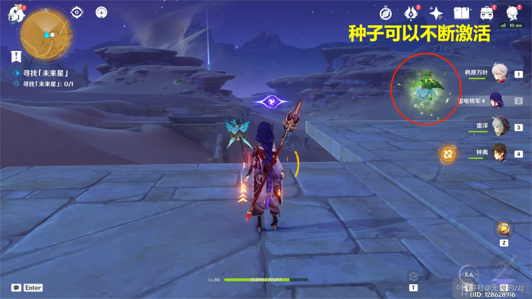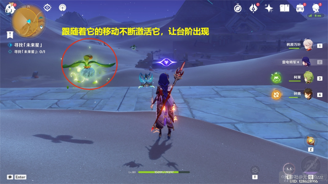 过关窍门:借助雷元素对三乘种子展开攻击,令其进入激活状态,如此一来,隐形的楼梯便会显现。要依据三乘种子的移动情况,持续更新台阶的位置。