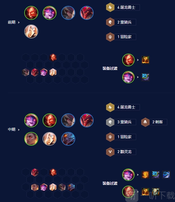 前期遭遇连败,此时仅保留体系相关卡牌,肉装可考虑让布隆携带,建议优先做出莉莉娅的离子火花用于过渡打工。