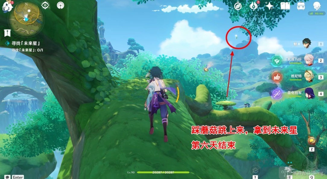 我们抵达蘑菇所在位置后跳一下,获取未来星,至此第六天结束。