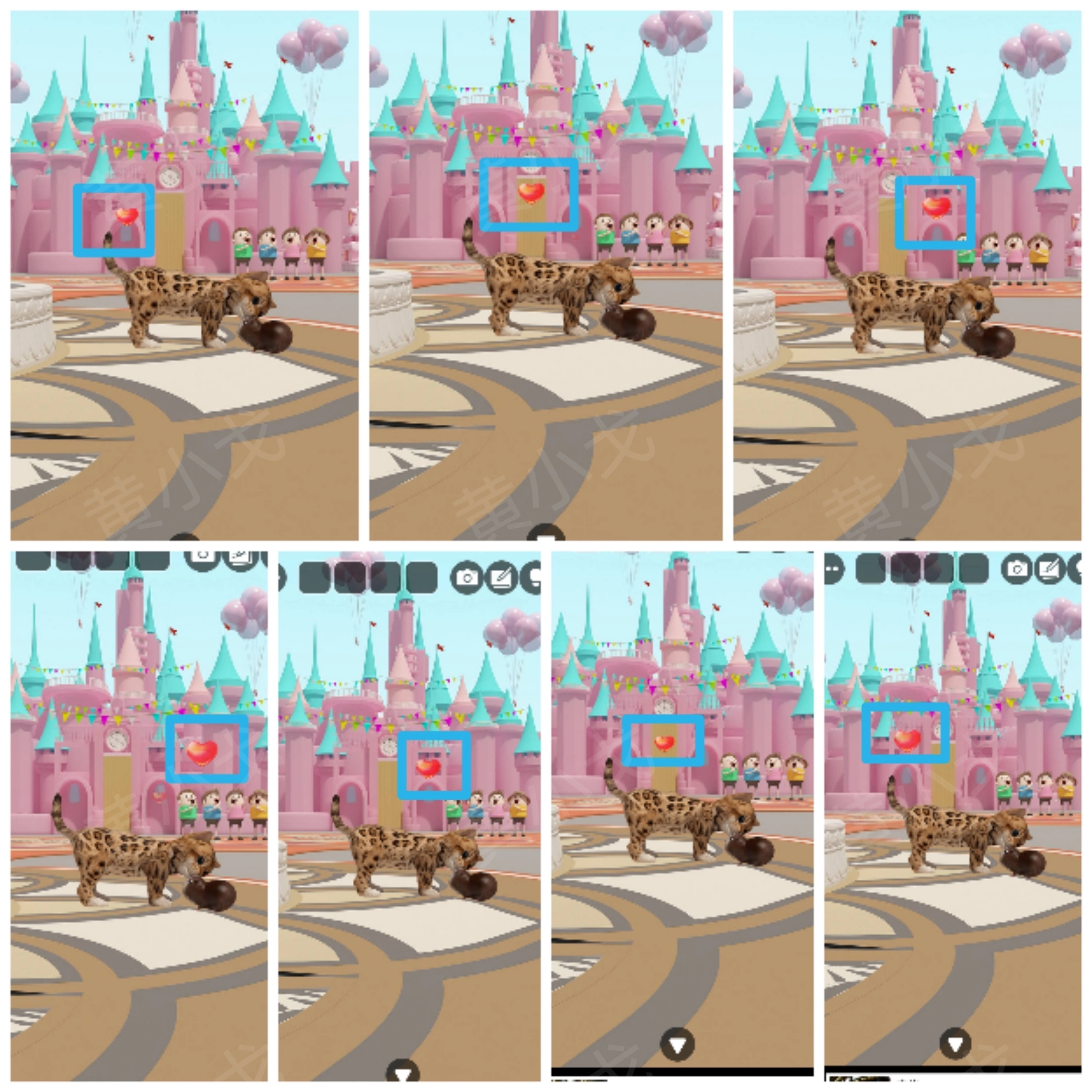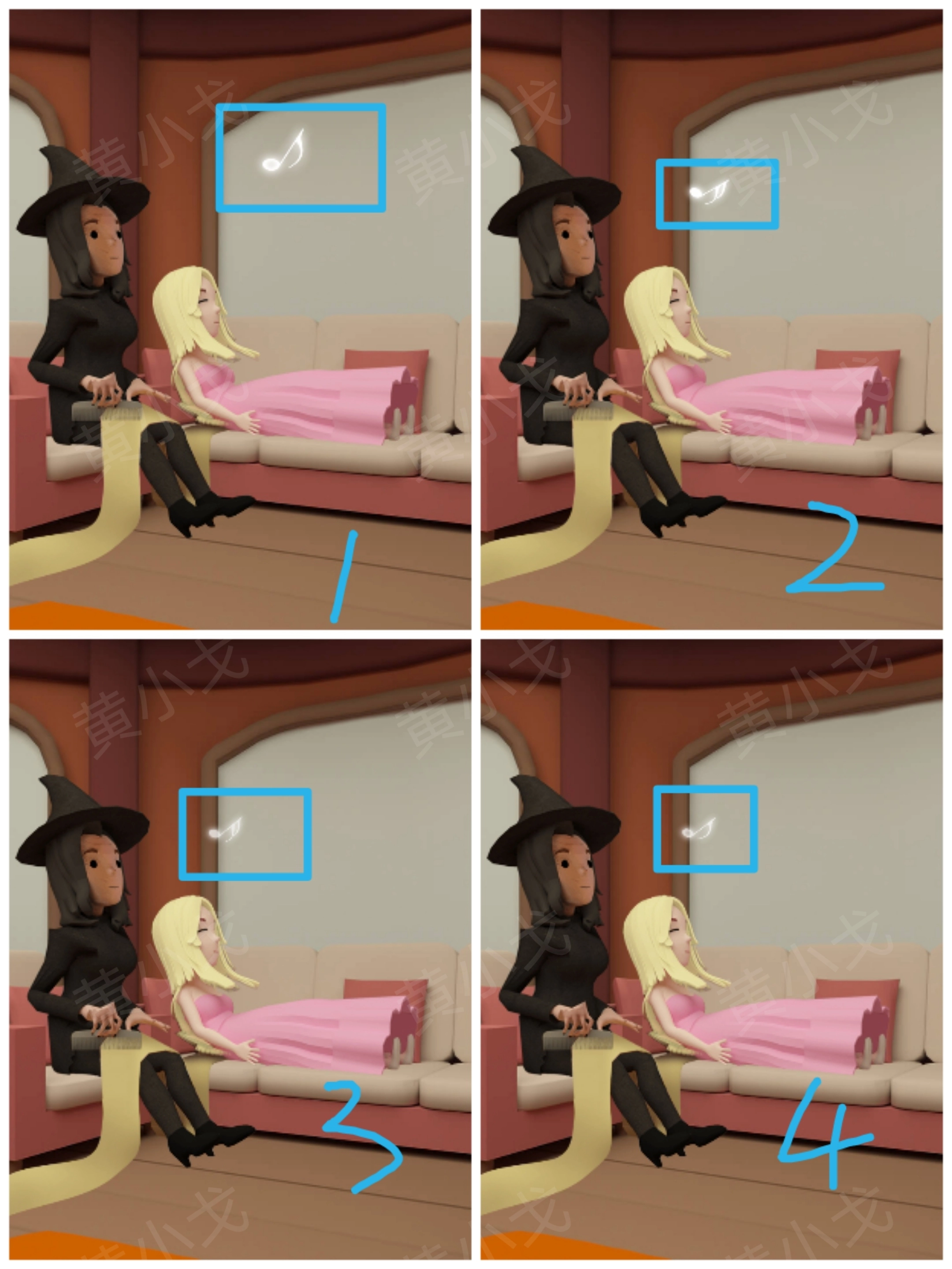 20. 轻点箜篌,依照[城堡]场景中小猫身上飘出爱心的先后顺序,依次按下琴弦。