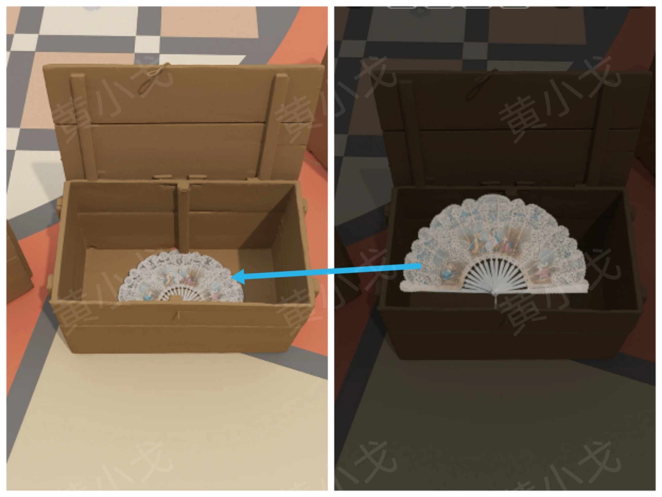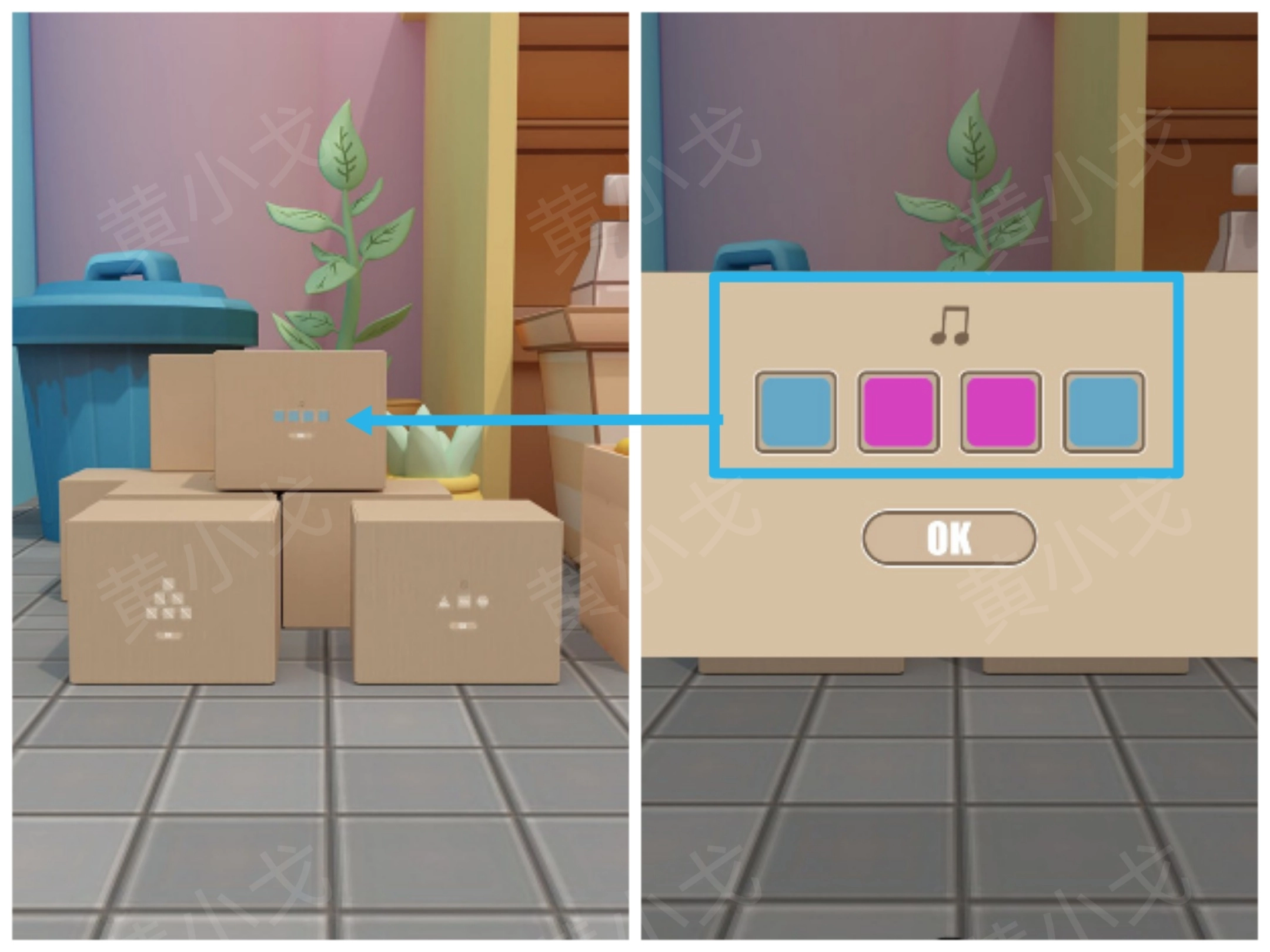 10. 轻触柜子左侧柜门上的密码锁,依据其上面呈现的图案与颜色提示,再联系书籍里的线索,对密码锁进行调整。