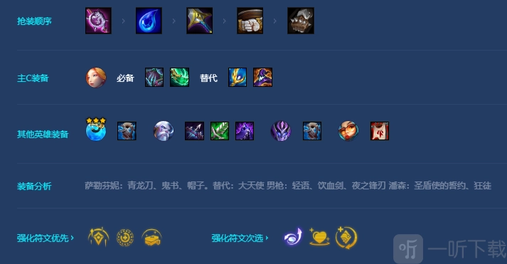 前期过渡阵容选择EZ、老鼠、蕾欧娜和狗头。游戏开局时,优先抢夺水滴或者大棒,尽早做出青龙刀或者鬼书用于前期打工。