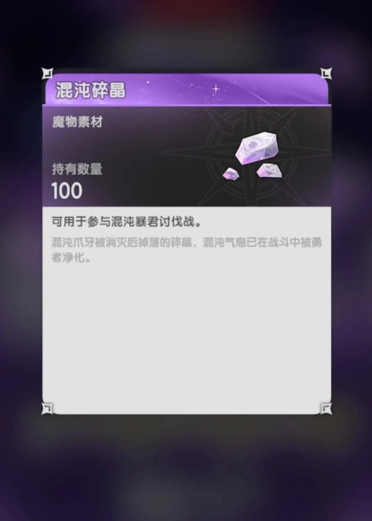 简而言之,混沌侵袭由两个阶段构成。第一阶段,玩家要与刷在地图上的混沌魔物战斗,获取混沌碎晶。混沌碎晶是参与第二阶段玩法的关键道具,当收集到100枚后,玩家便可与其他同样收集到足额混沌碎晶的玩家共同挑战boss 。首次挑战能获得固定数量的混沌晶体,该晶体可在家园的神秘商人处兑换各类实用道具。