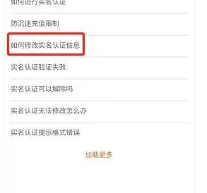 4、点击进入与实名认证相关的问题页面,查找如何修改实名认证信息。