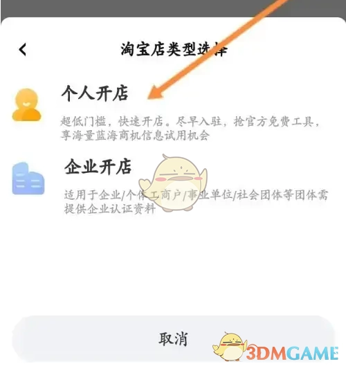 3、接着点击个人开店
