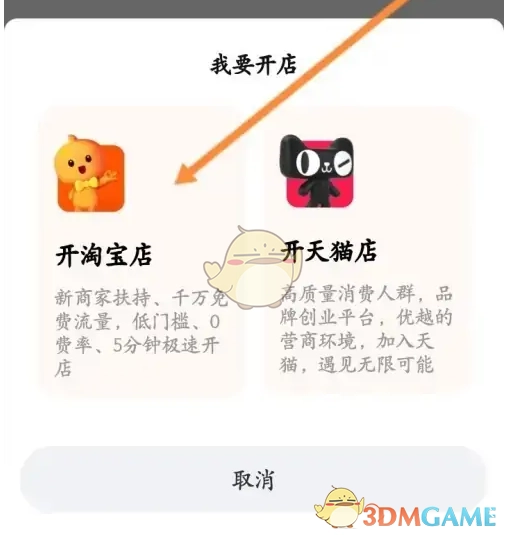 2、随后点击下方的“开淘宝店”,具体位置如图所示。