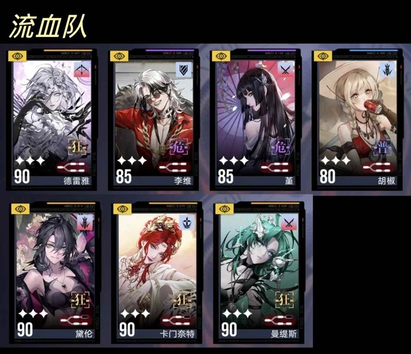 当前版本,上场机会方面比不上破绽队了,核心的四个角色都需要培养。流血队存在清杂能力欠佳的问题,而且德雷雅专属烙印仅能开启两次。