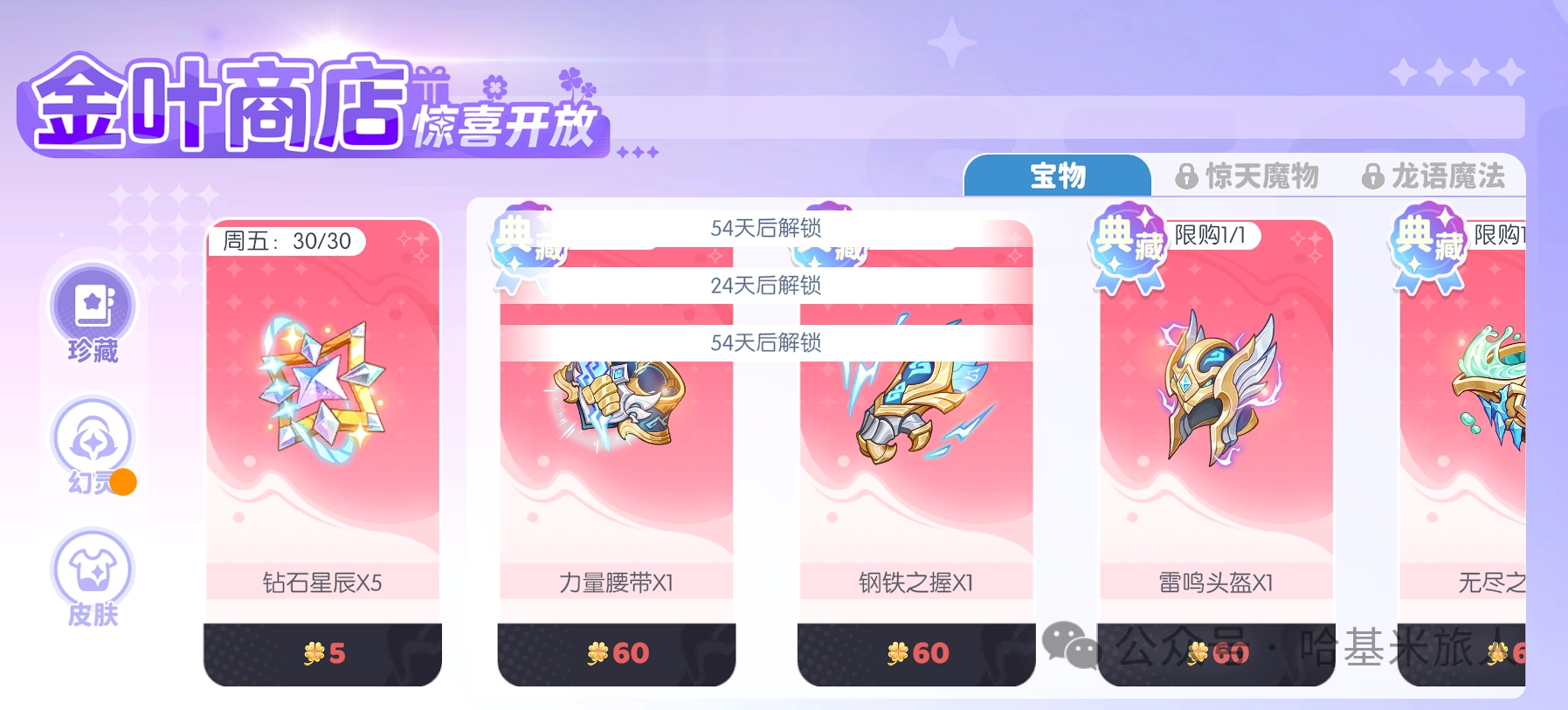 可兑换神话神器、神话魔物(开启30日后)、神话龙语魔法(开启60日后),还有限时皮肤。