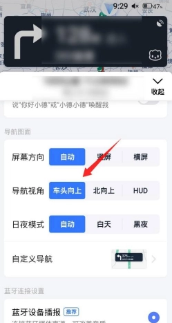 3、导航模式下,默认的导航视角是车头向上。